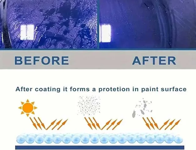 A kerámia réteg véd az időjárás, az UV-sugarak és a szennyeződések ellen. A fényezés több hétig ép és fényes marad.