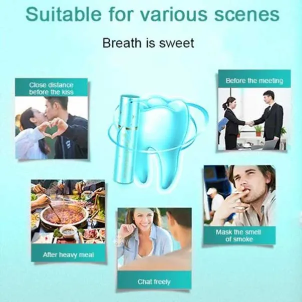 A rossz lehelet elleni spray hosszan tartó és friss leheletet biztosít akár 24 órán keresztül. A recept illóolajokat és aromás növényeket tartalmaz, amelyek antimikrobiális és friss hatásúak.