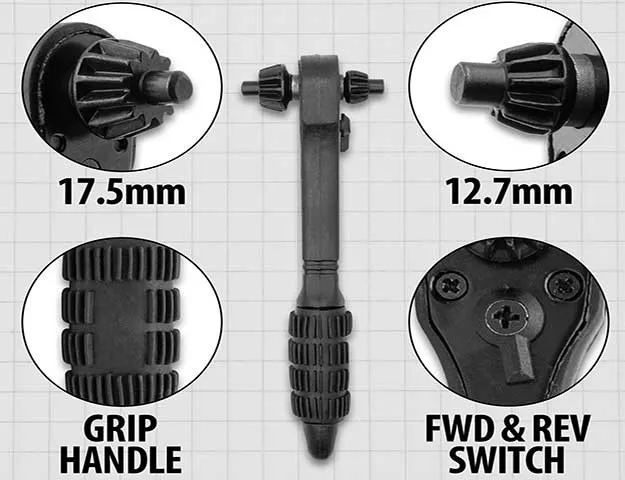 2 az 1-ben racsnis kulcsunkkal másodpercek alatt cserélheti a biteket. Takarítson meg időt és növelje a termelékenységet. Felejtse el a klasszikus villáskulcsokat. 2 az 1-ben racsnis kulcsunk fúrófejekhez a könnyű használat, a precíz meghúzás és a maximális kényelem érdekében készült. Az ideális eszköz a műhelyben.